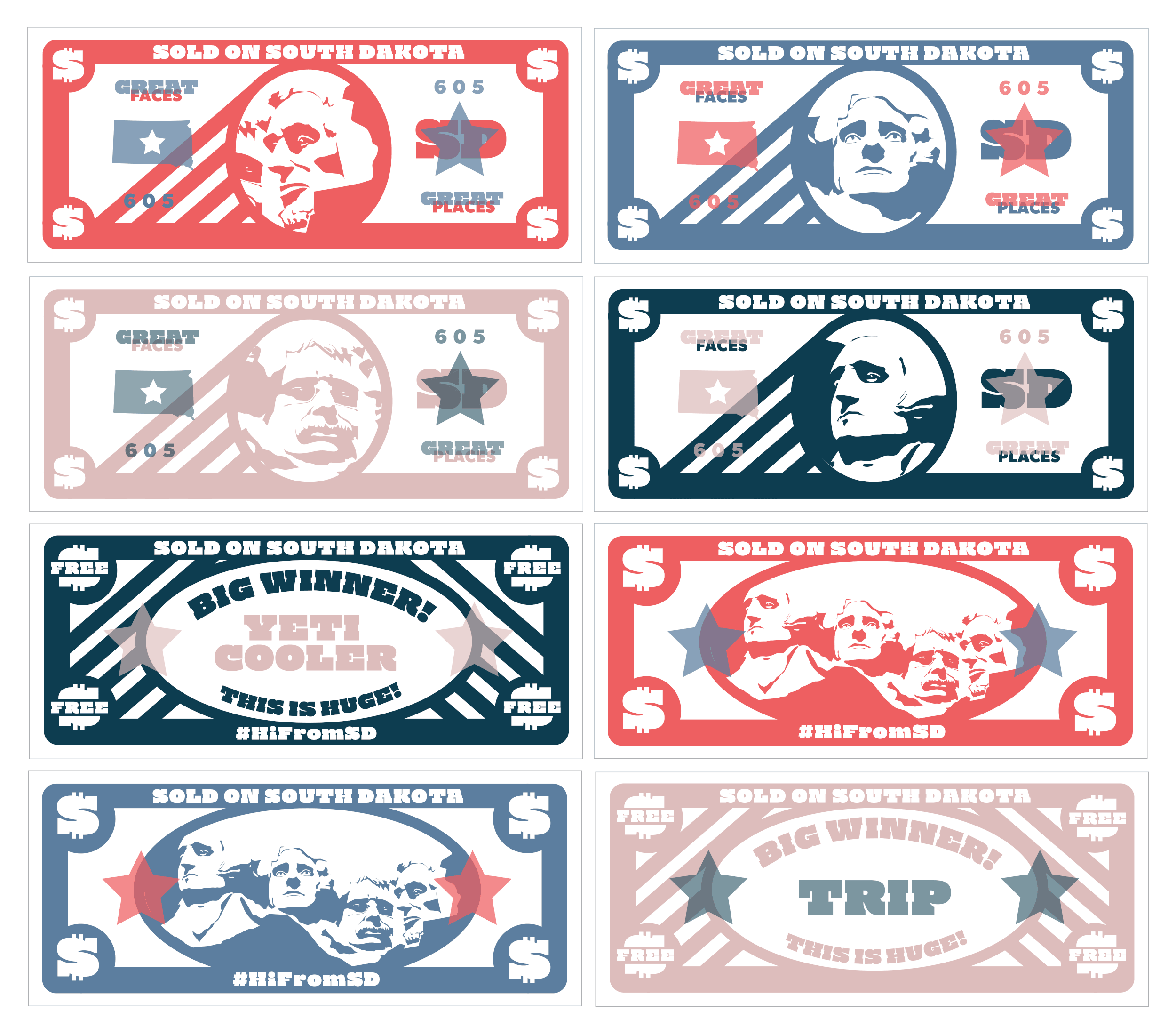 We created a landing page, wall graphics, fake South Dakota money for the prize machine, social posts and tons of posters and swag. Sold on south Dakota’s president’s day campaign generated more than 17 million impressions, resulting in nearly 20,000 travel bookings in the state as a result. The activation drew almost 100,000 people.