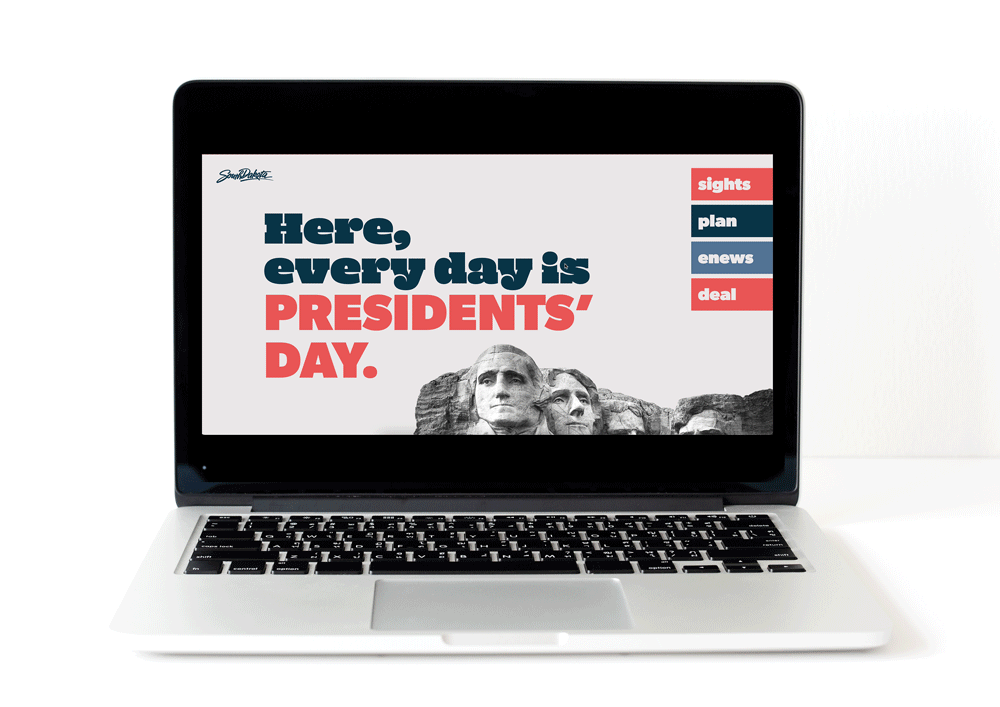 President’s Day has been taken over by mattress and car sales. All using Mount Rushmore as the main visual. To take advantage of everyone using Mount Rushmore in their ads, we jumped on the band wagon and promoted South Dakota tourism the same way. We join in on the fun, and had a blowout President’s Day event in the spirit of a mattress or car sale.